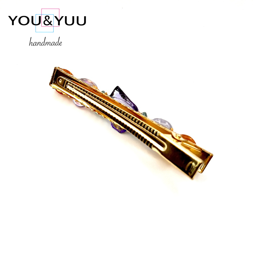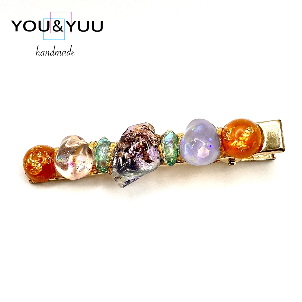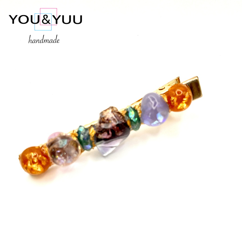 アメジストカラー&アンバーレジンクリップ – 幻想的な輝き – / レジンヘアクリップ / Ls 242