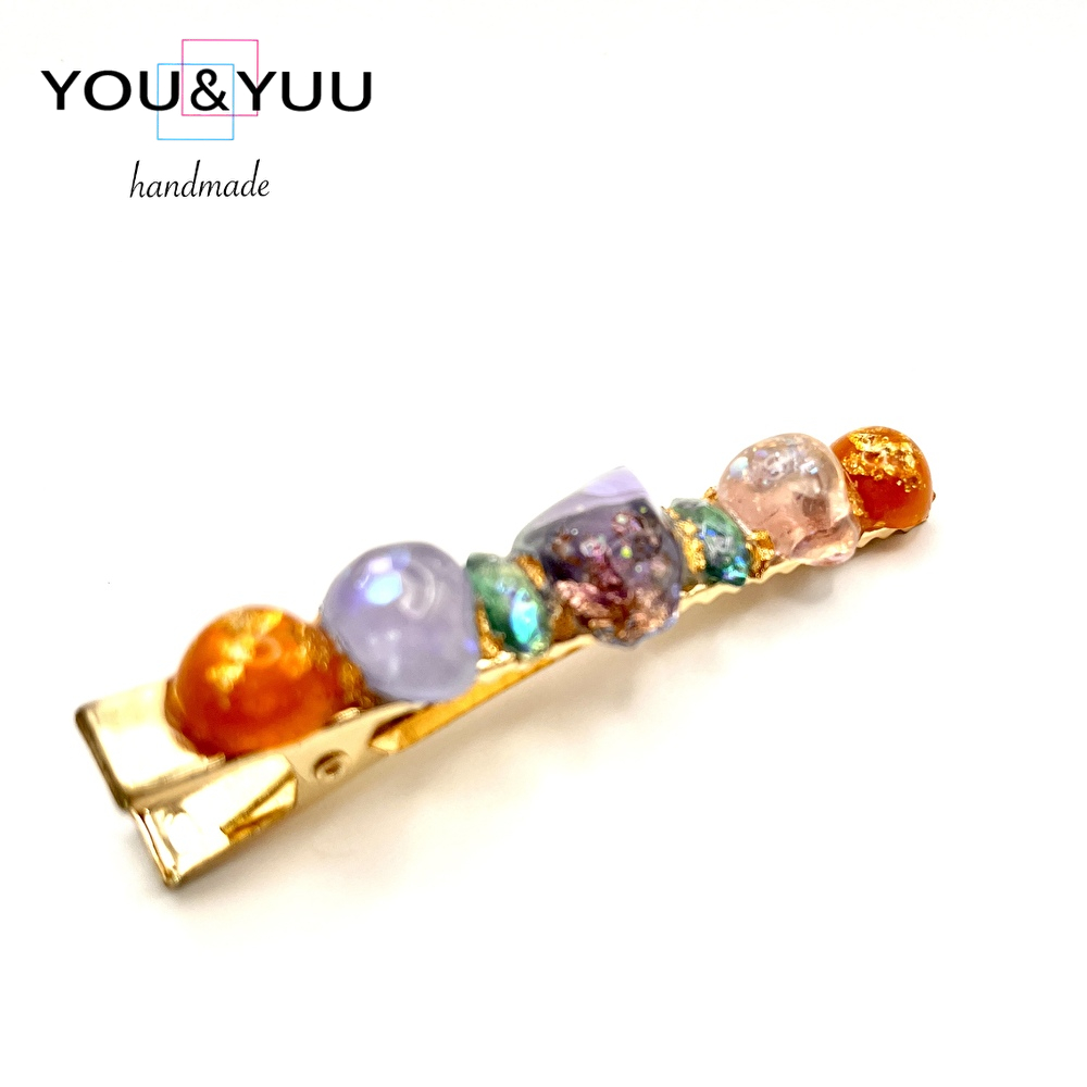 【特長】様々な色のキラキラがまるで星のように輝いて登場!ヘアクリップとしてレジンがアクセントになること間違いなし