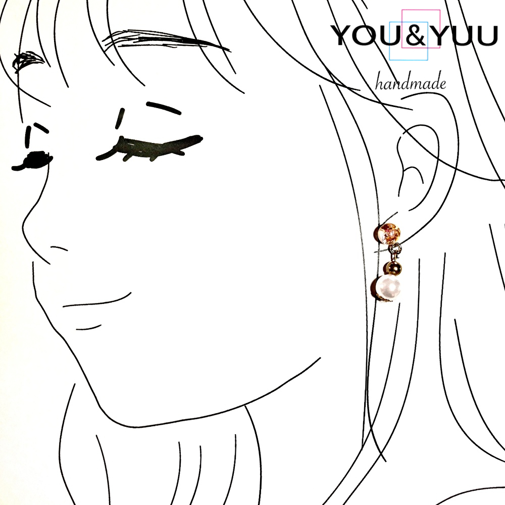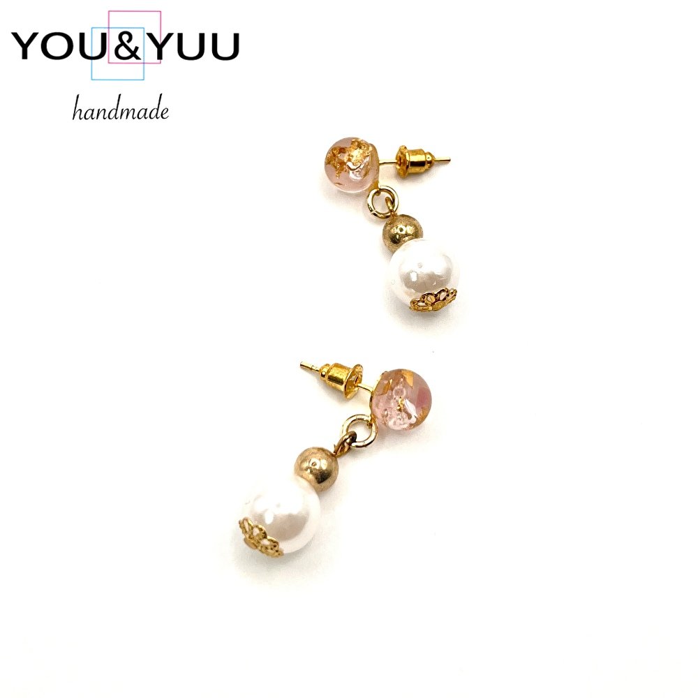 ゴールドアクセントのフェミニンピアス / レジンピアス / Ls 302
