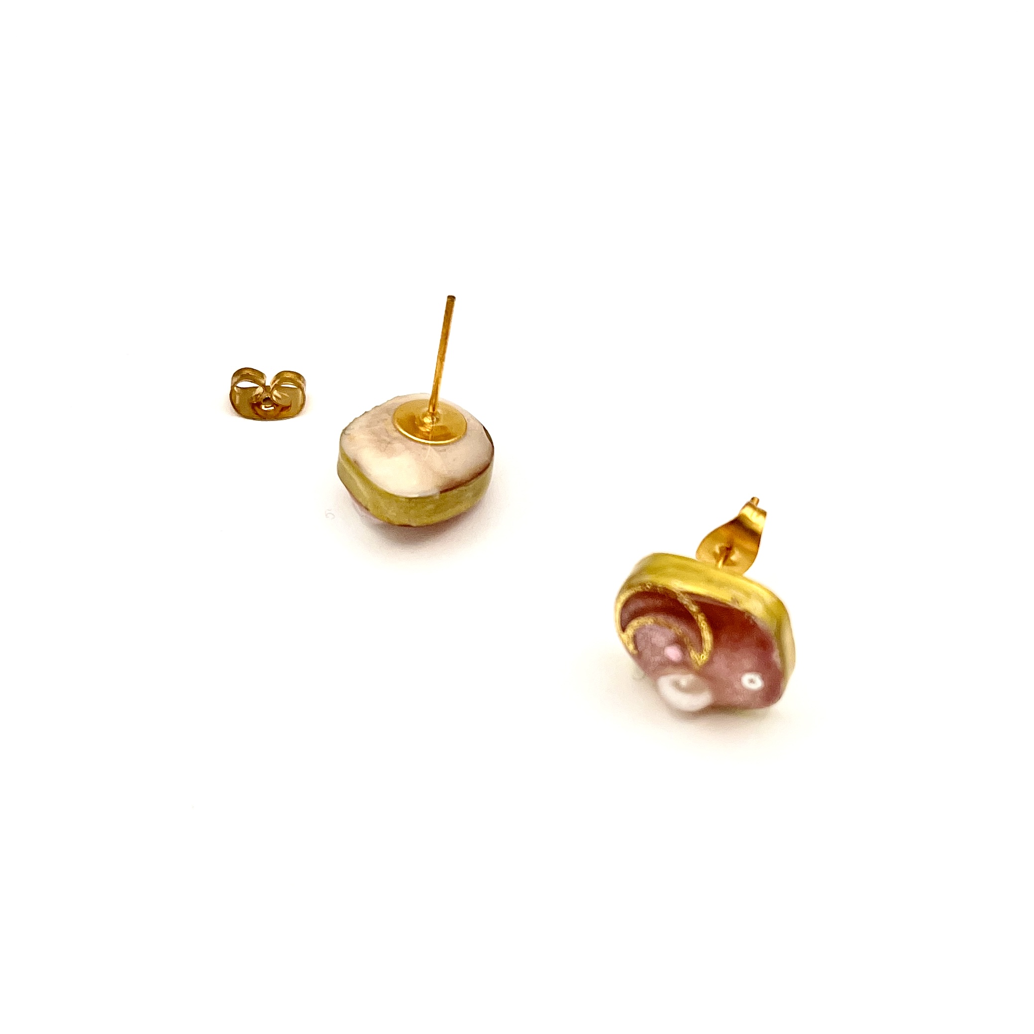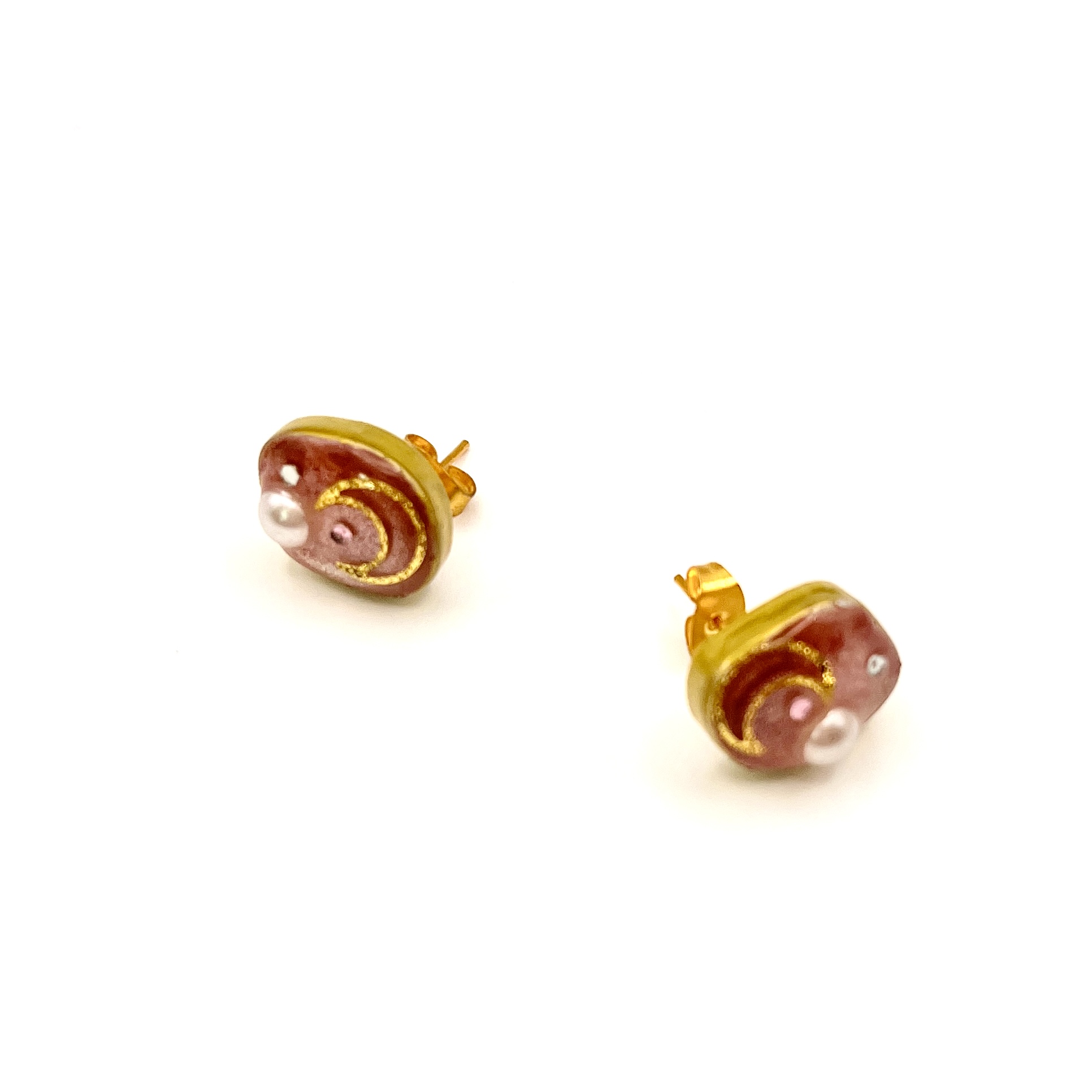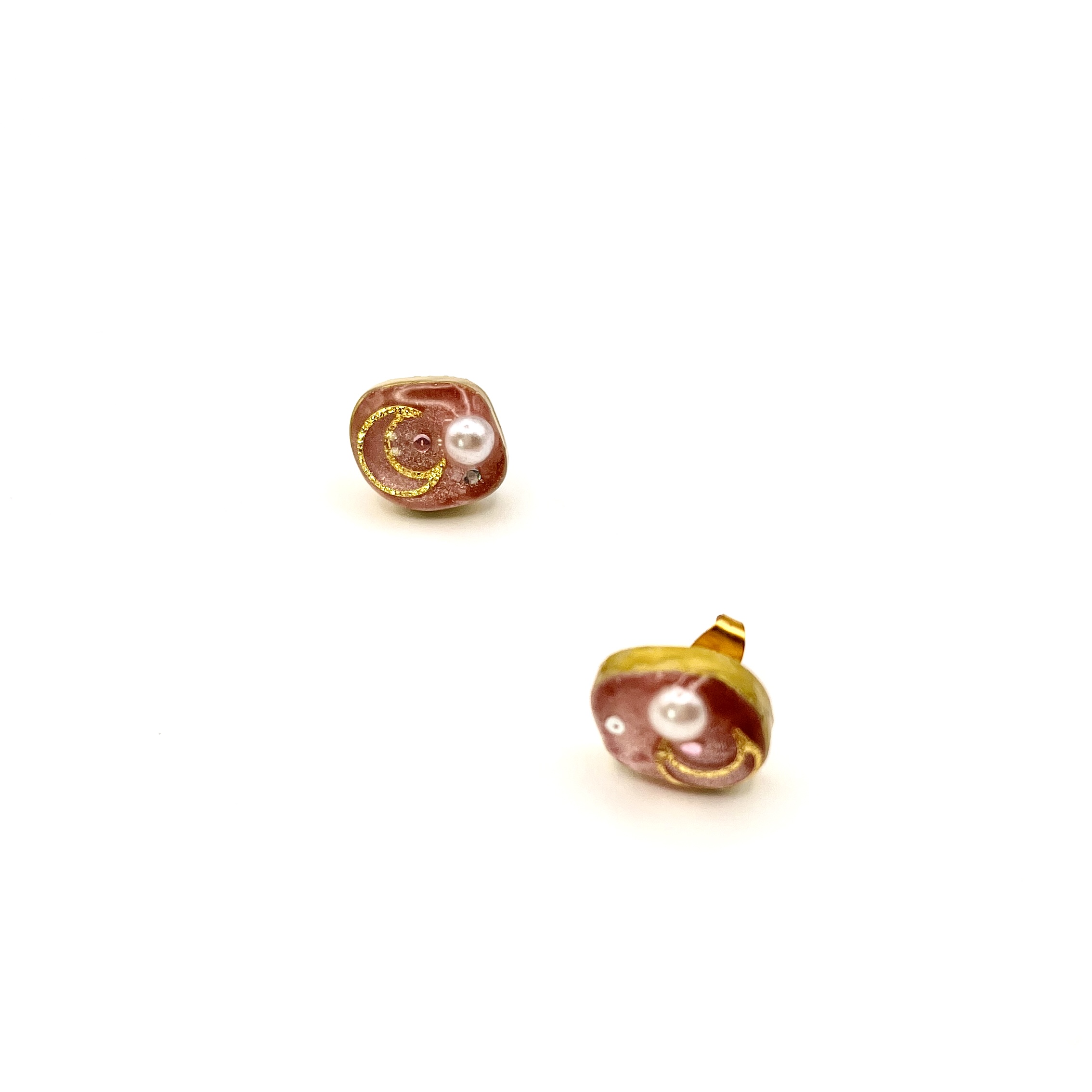【特長】透明感のあるピンクレジンに、艶めくパールと繊細なラインストーンが優雅にきらめきます。メタルパーツがほどよく引き締め役となり、甘すぎず洗練された印象に。大人可愛いコーデにぴったりのデザインです。