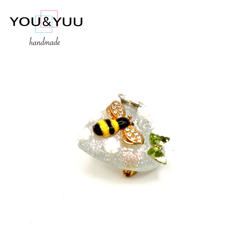 ラインストーンの輝くミツバチが主役のキュートなブローチ。