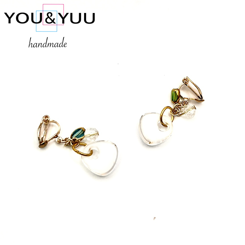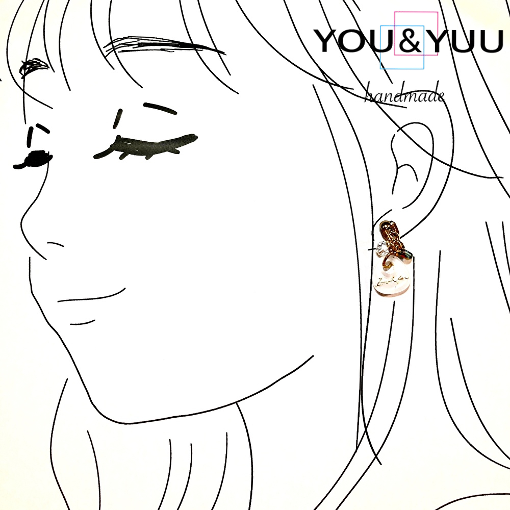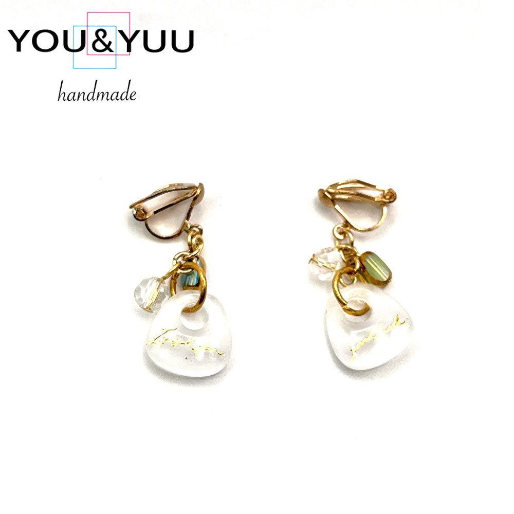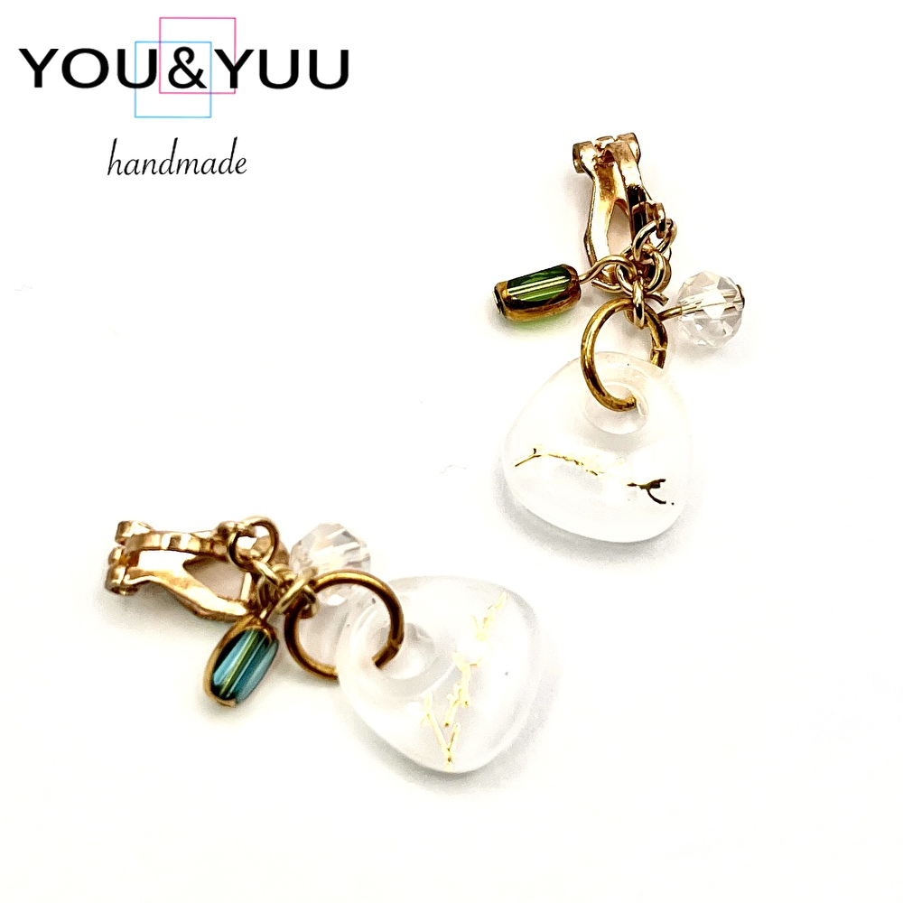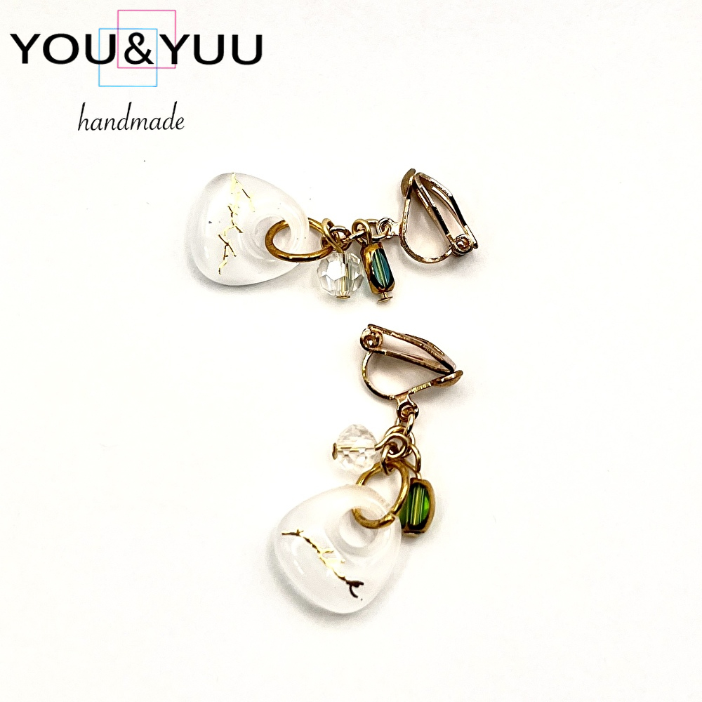 【特長】透き通るホワイトレジンに、繊細な金のシールを閉じ込めた上品なデザイン。光を受けるたびにやわらかく輝き、耳元をエレガントに彩ります。