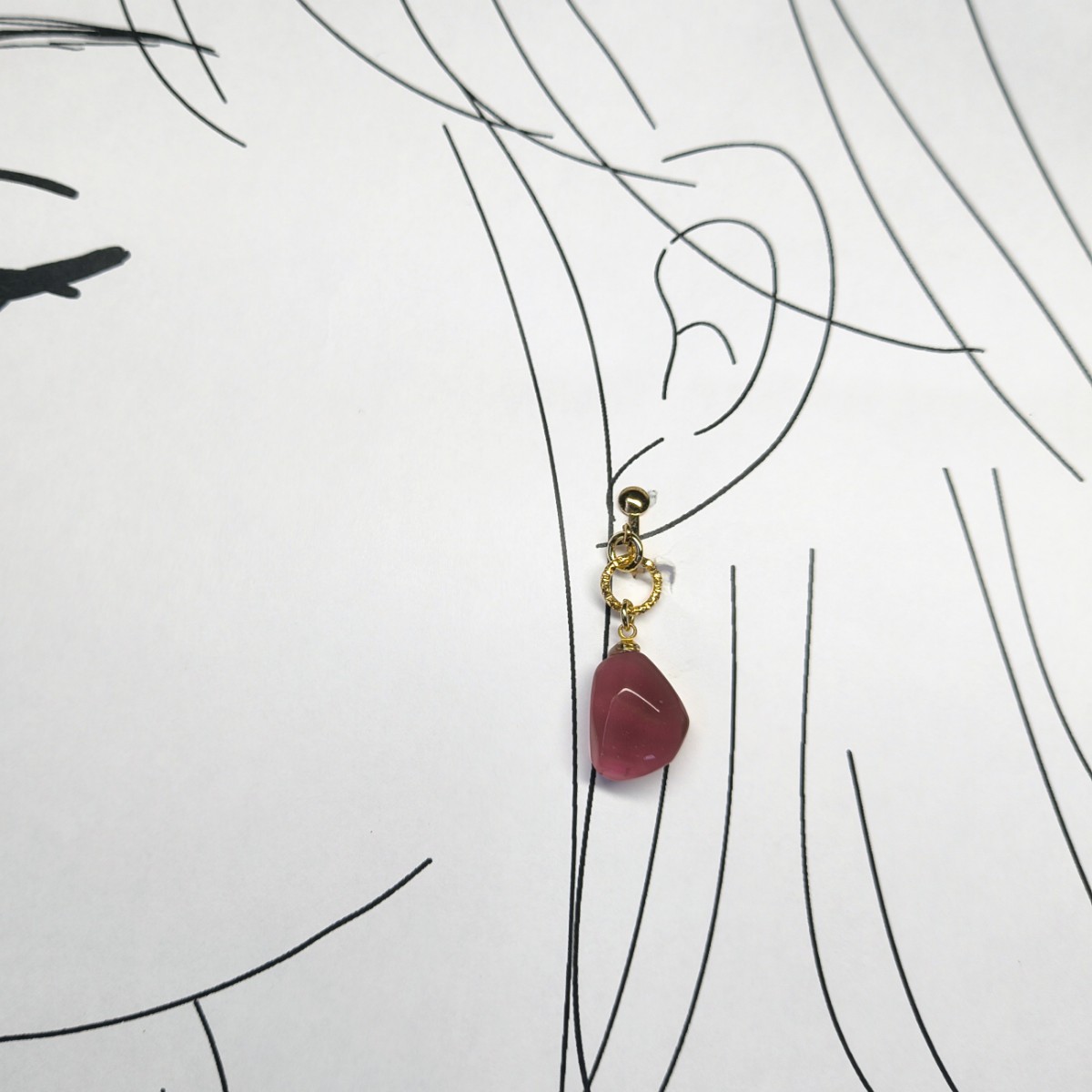 透明感のある赤が耳元を鮮やかに彩る、大人のためのワンポイントアクセ。