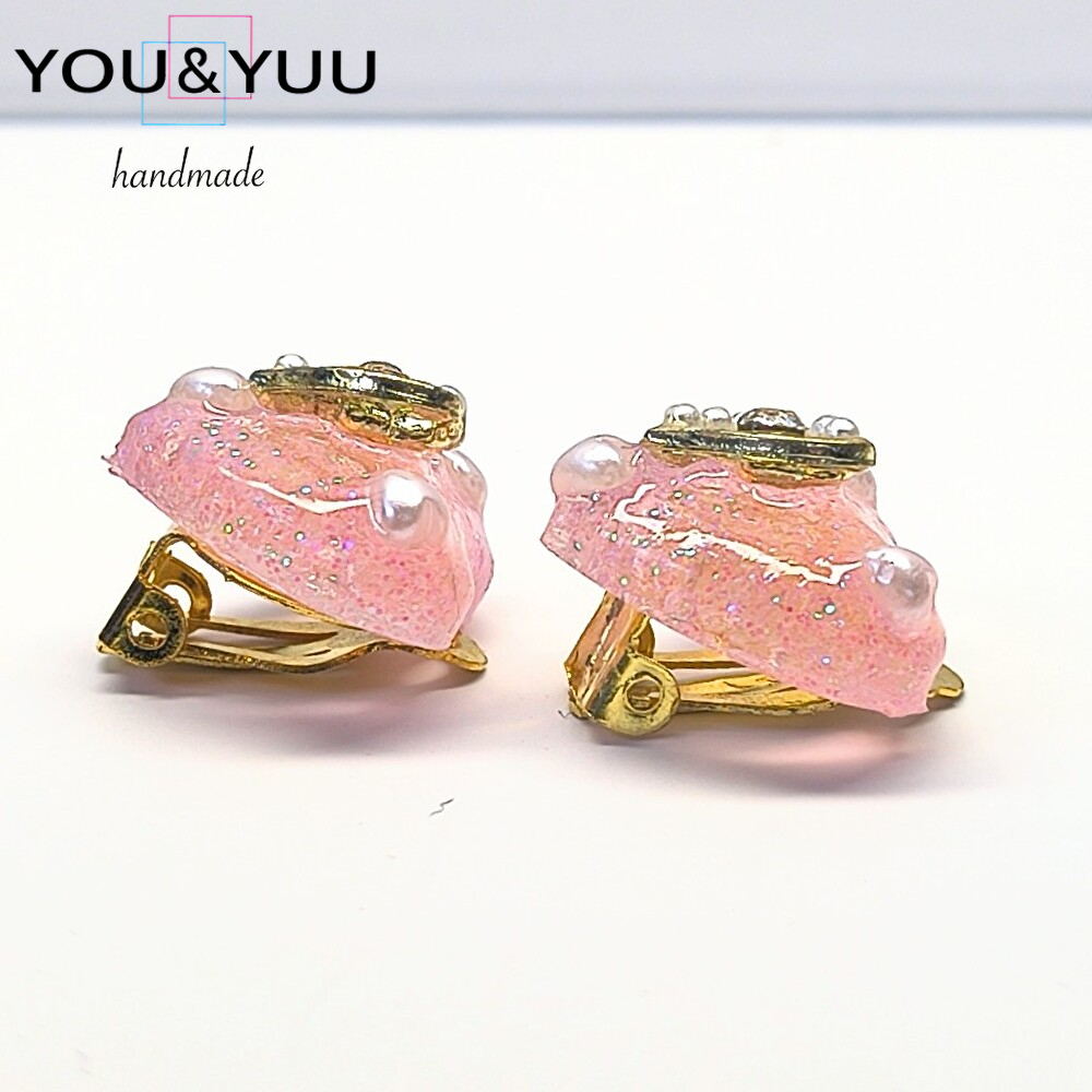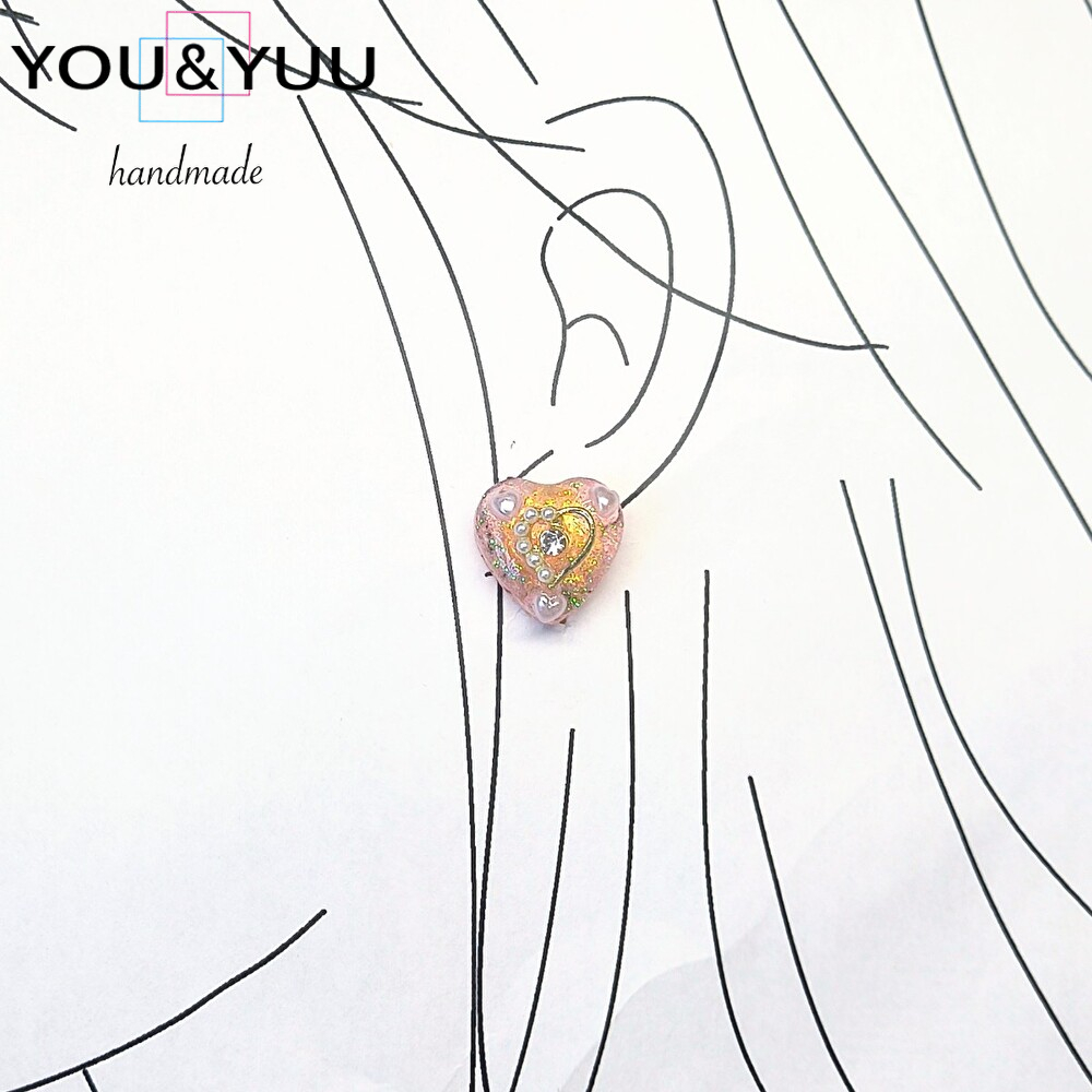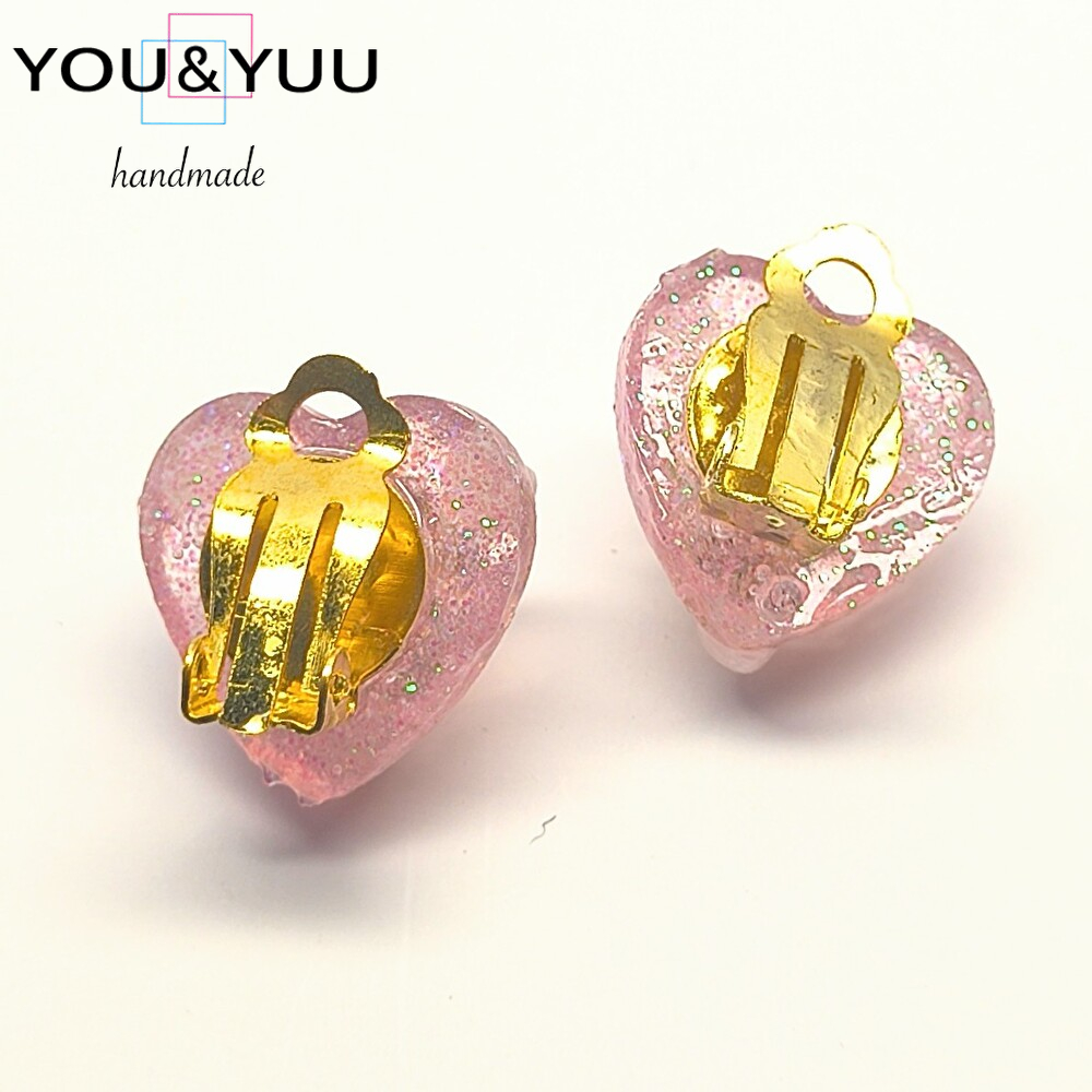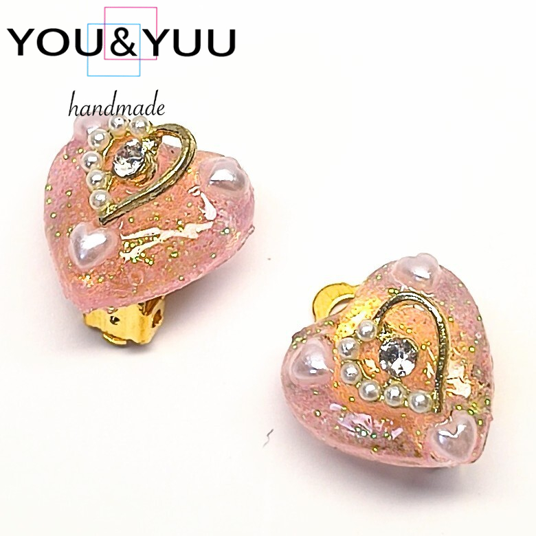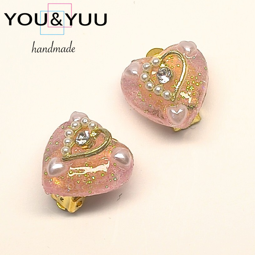 【特長】ハート形にラメを入れて、ゴールドハートのパーツにミンハートのパーツでデコレーションして作りました