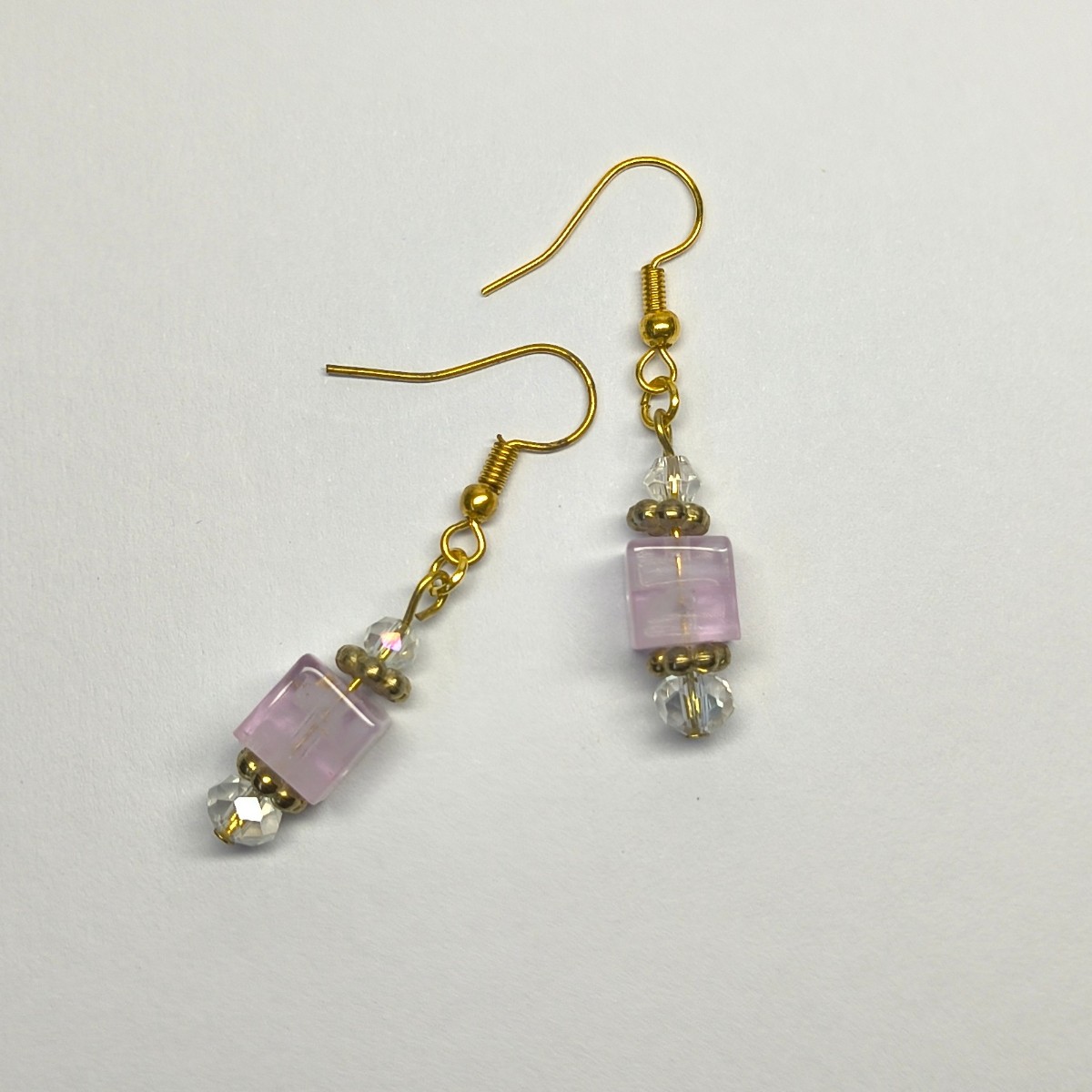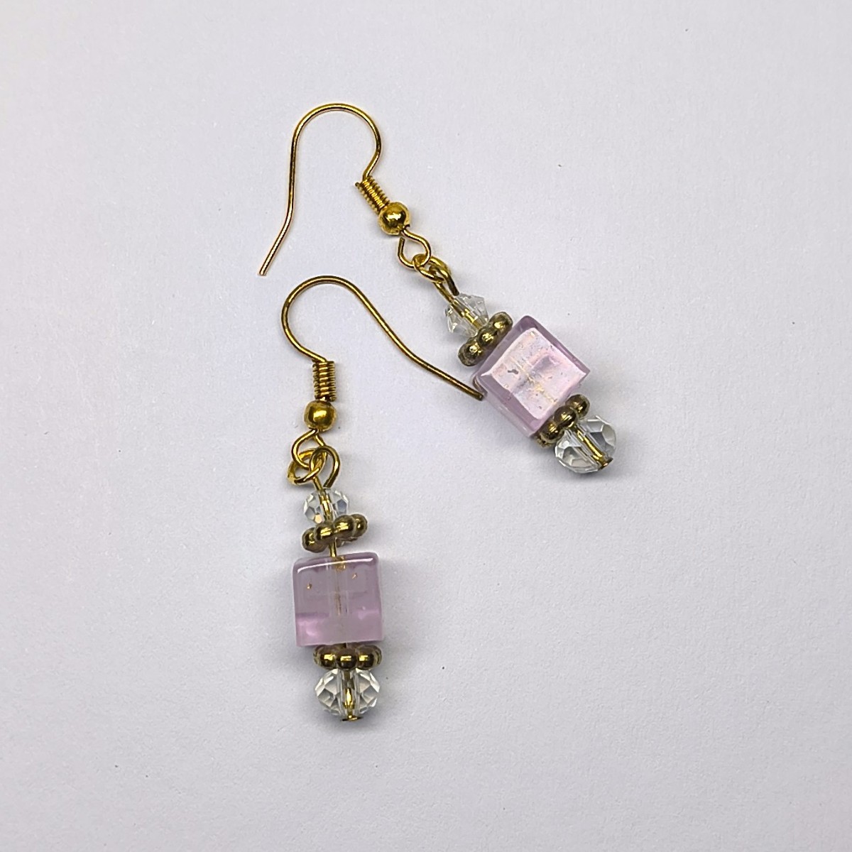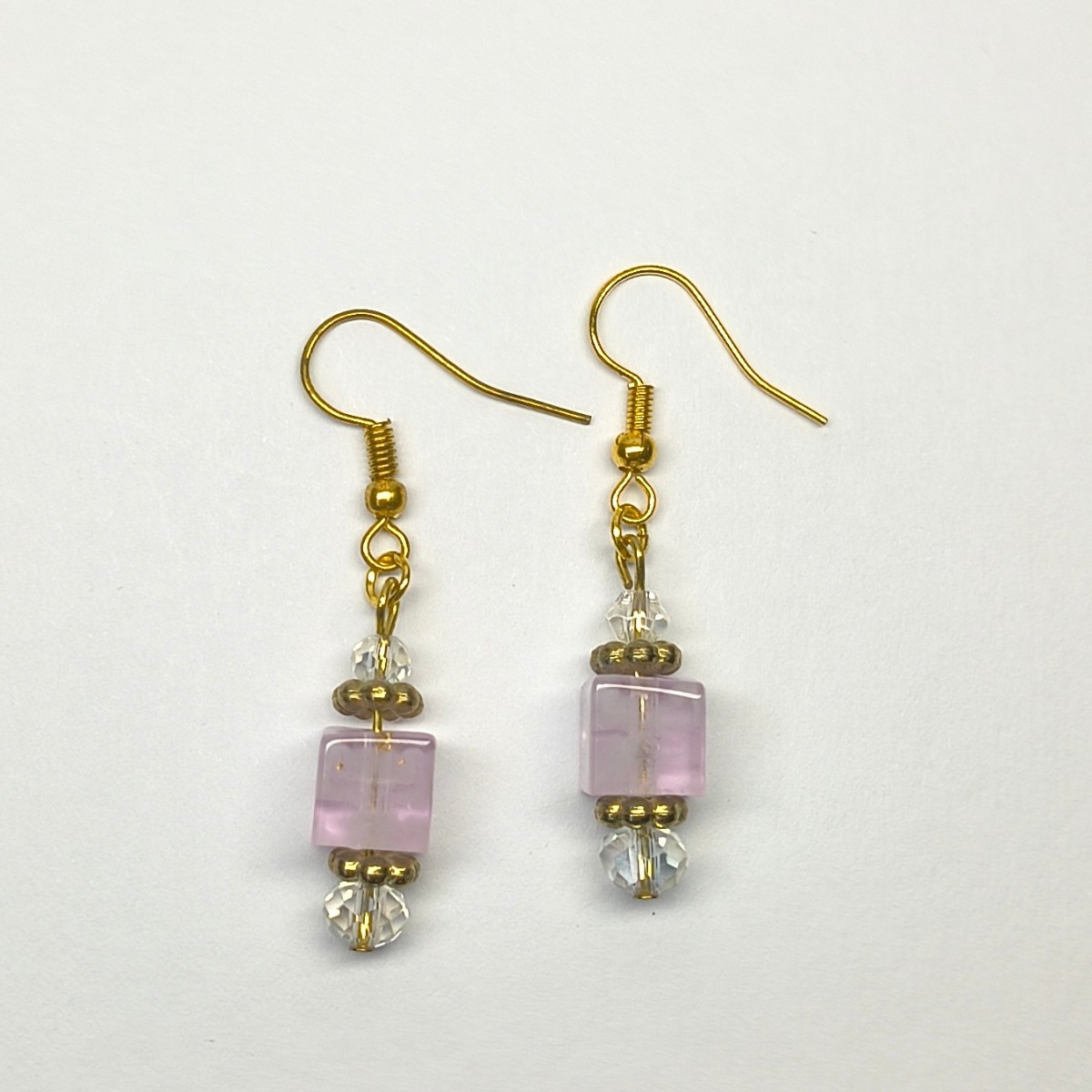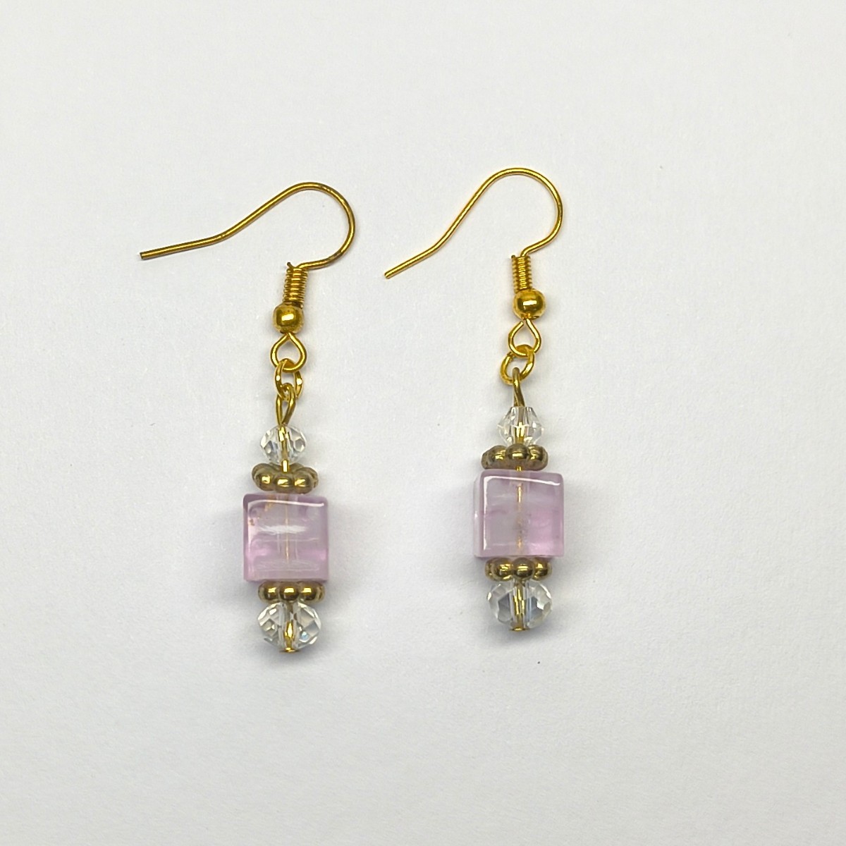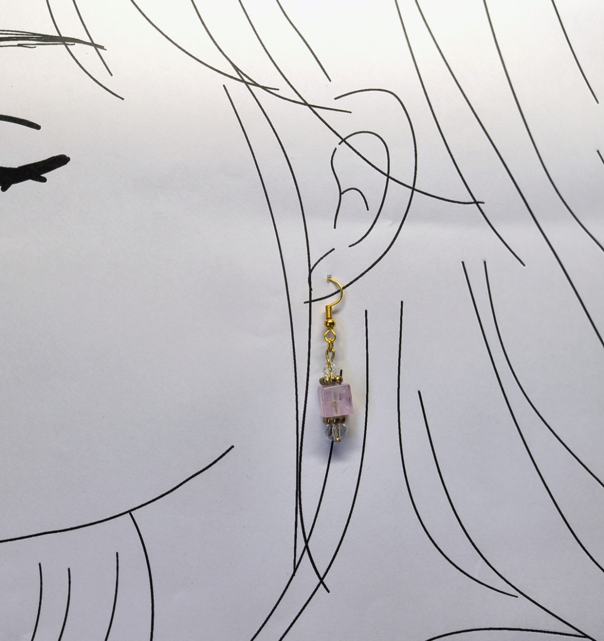 【特長】柔らかなピンクとミルキーホワイトの組み合わせが、優しさと清潔感を感じさせるデザイン。立体的なキューブ形状が光を受けてきらめき、シンプルなのに存在感のある仕上がりに。フェミニンコーデはもちろん、デニムなどカジュアルスタイルにも好相性。
