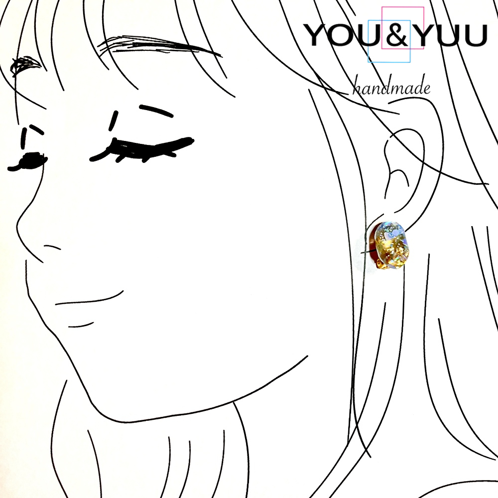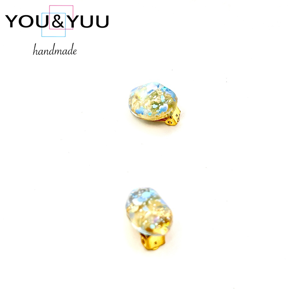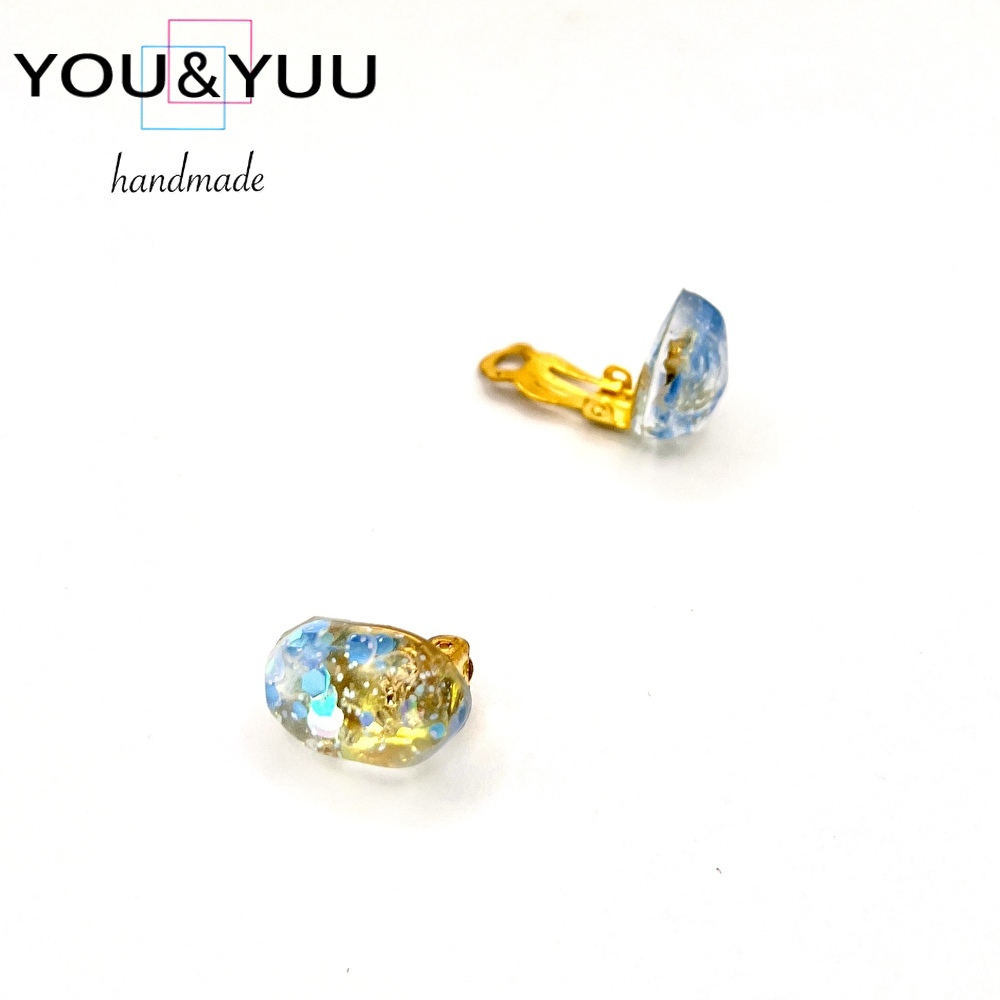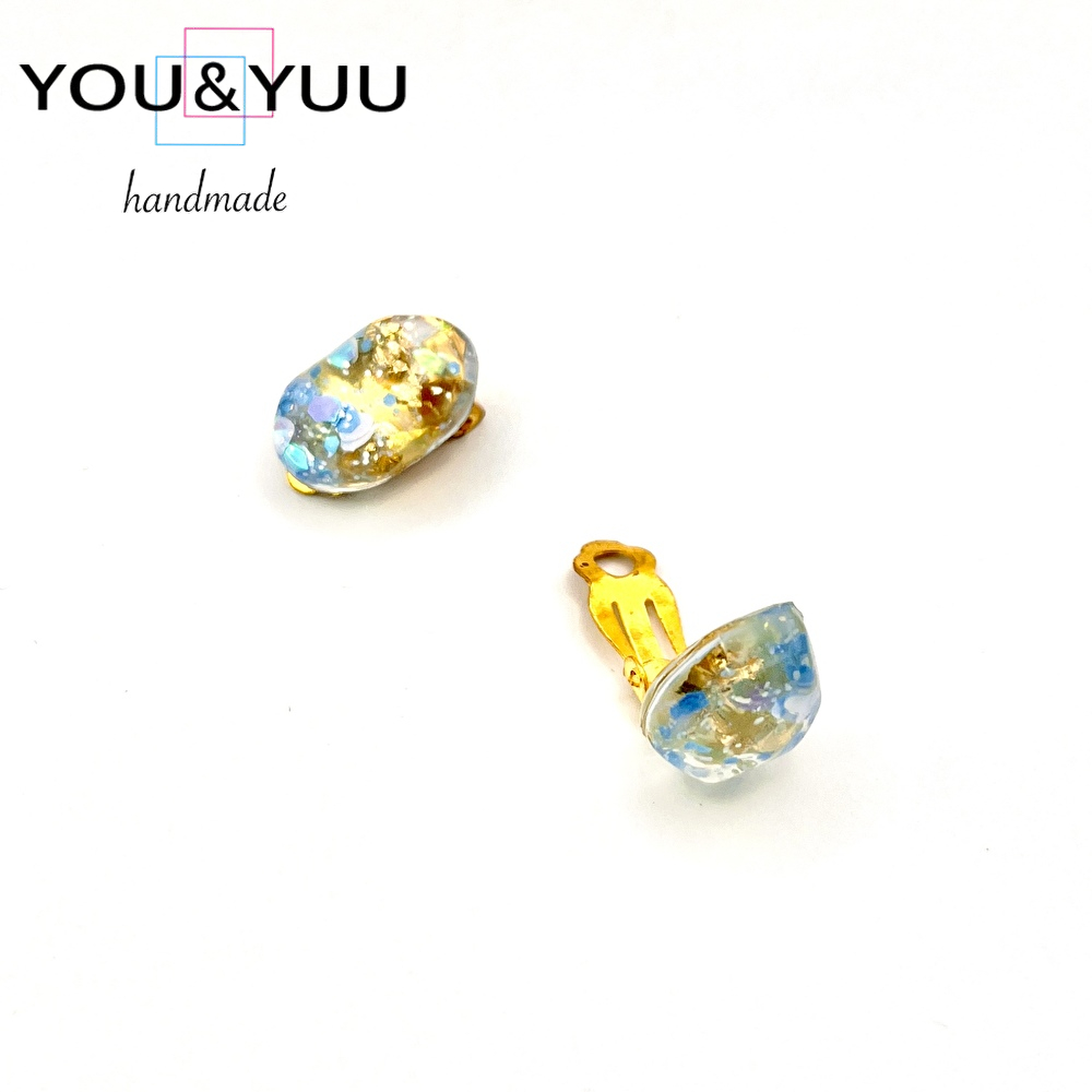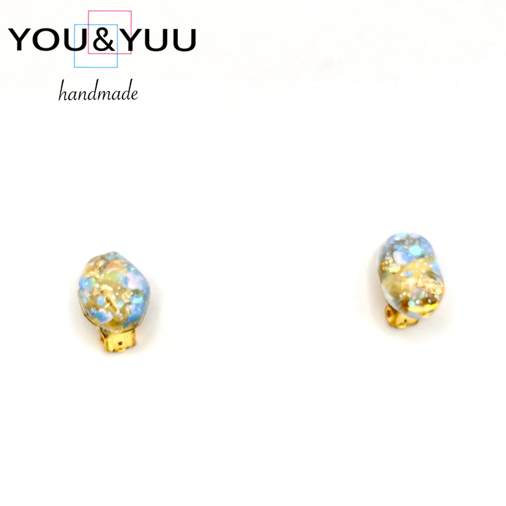 【特長】涼やかなライトブルーのレジンに、華やかなゴールドと金箔が輝き、光を受けて上品に煌めきます。