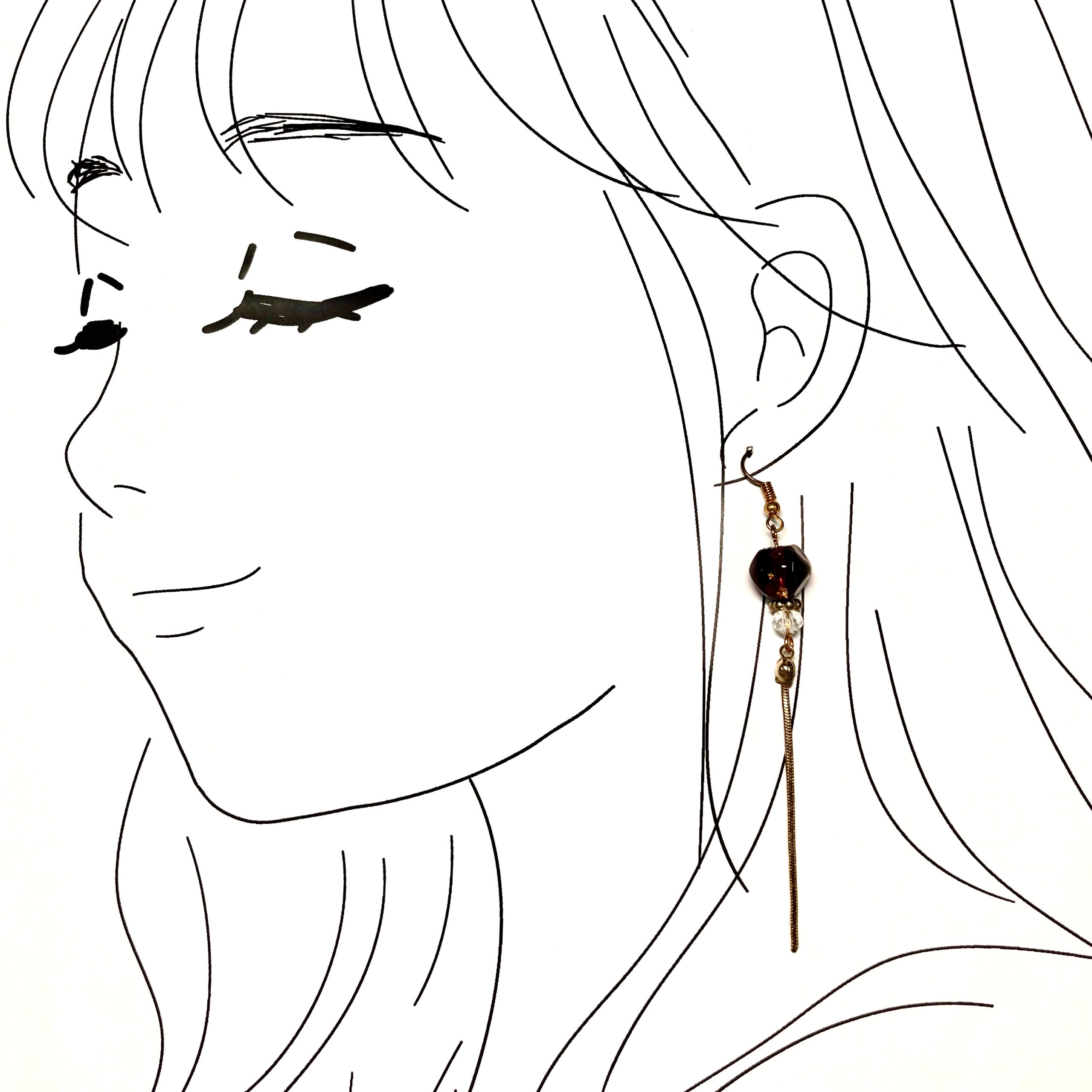 艶めくブラウンと繊細なゴールドの煌めきが、夜空の月を思わせるロマンチックなピアス。揺れるチェーンが女性らしさを引き立て、耳元に気品をプラスします。