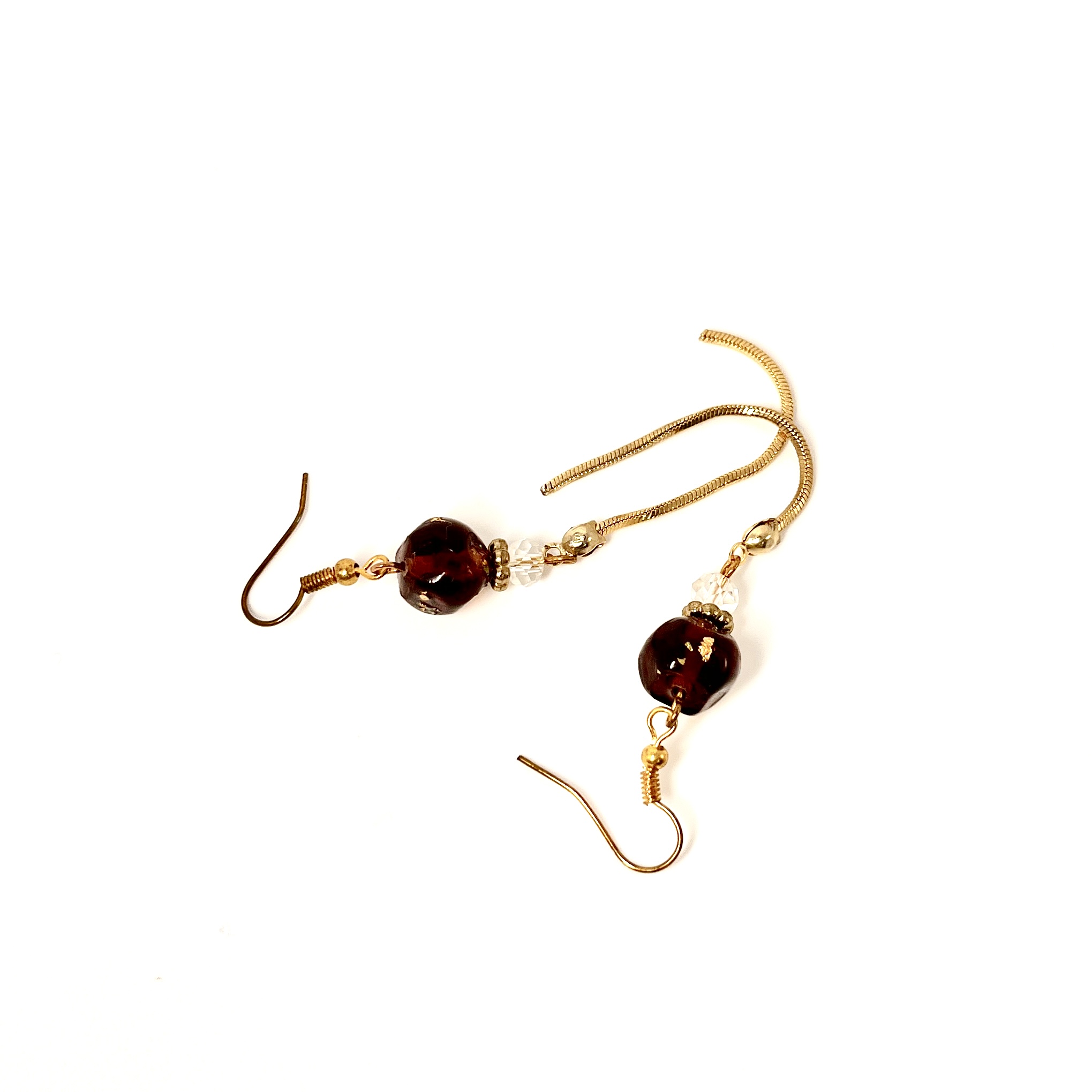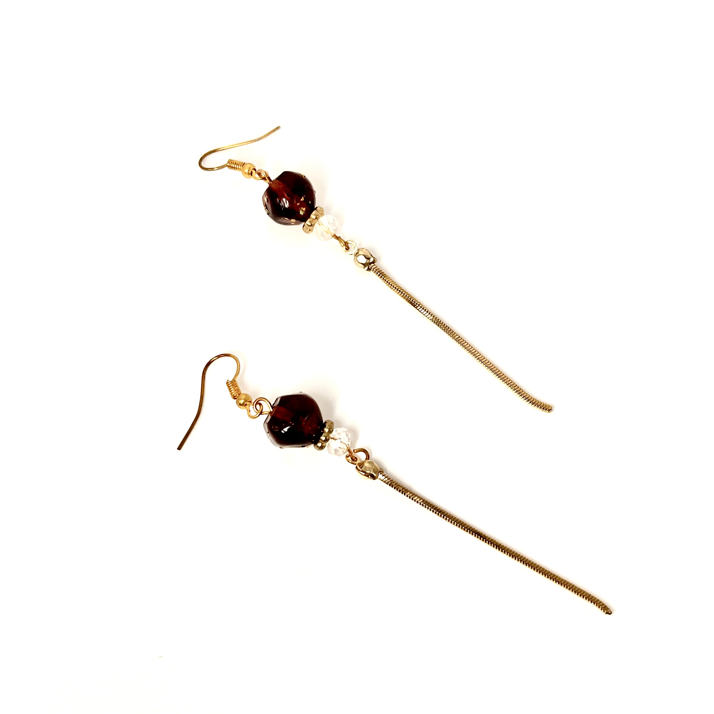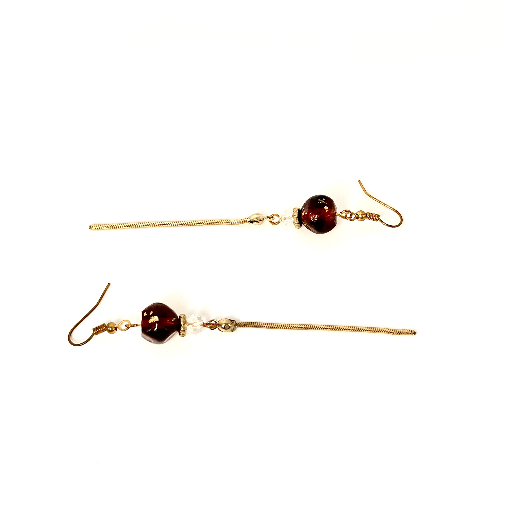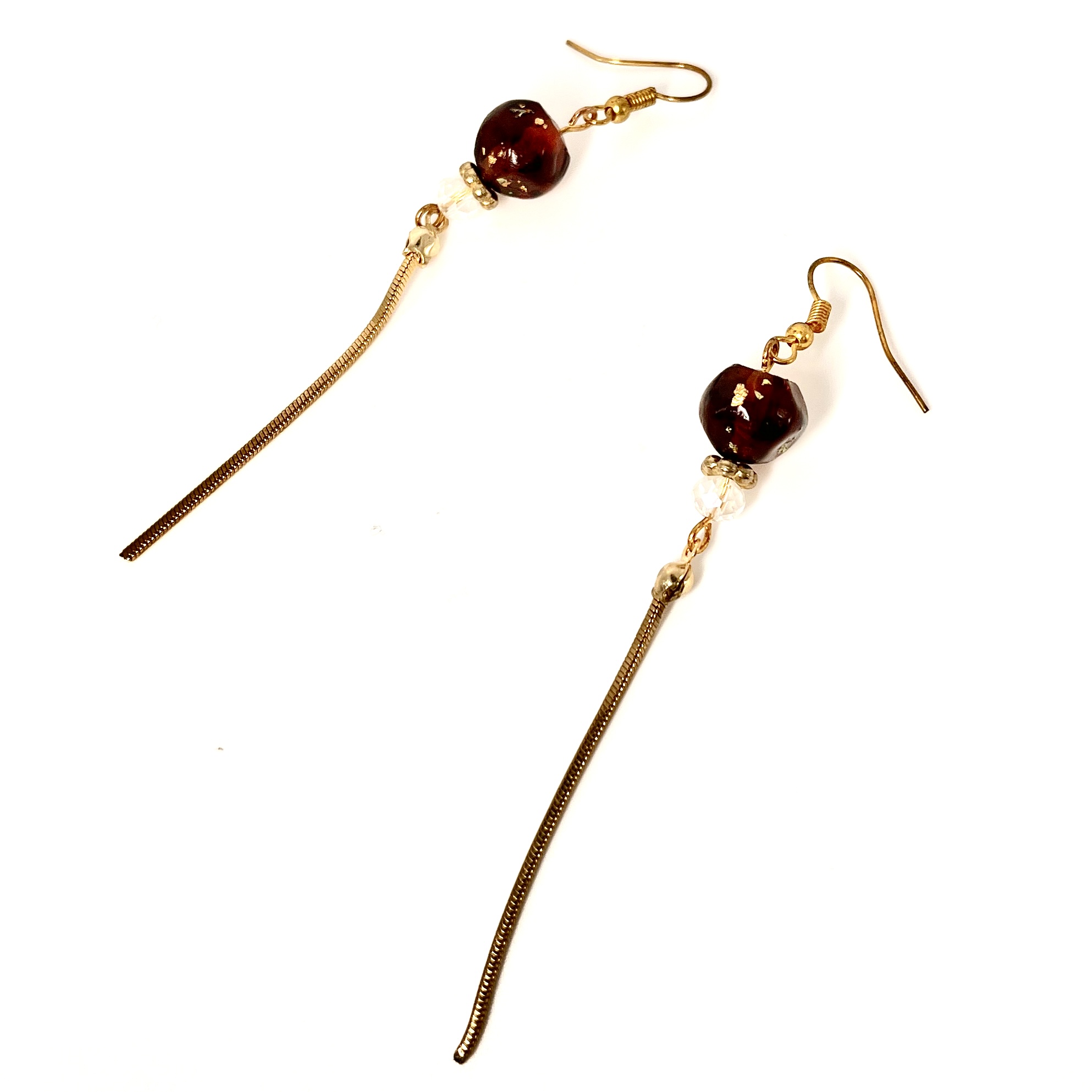 【特長】艶やかなブラウンカラーに金箔の繊細なきらめきを閉じ込めたデザイン。落ち着いた色合いの中に、さりげない華やかさが光る上品なピアスです。