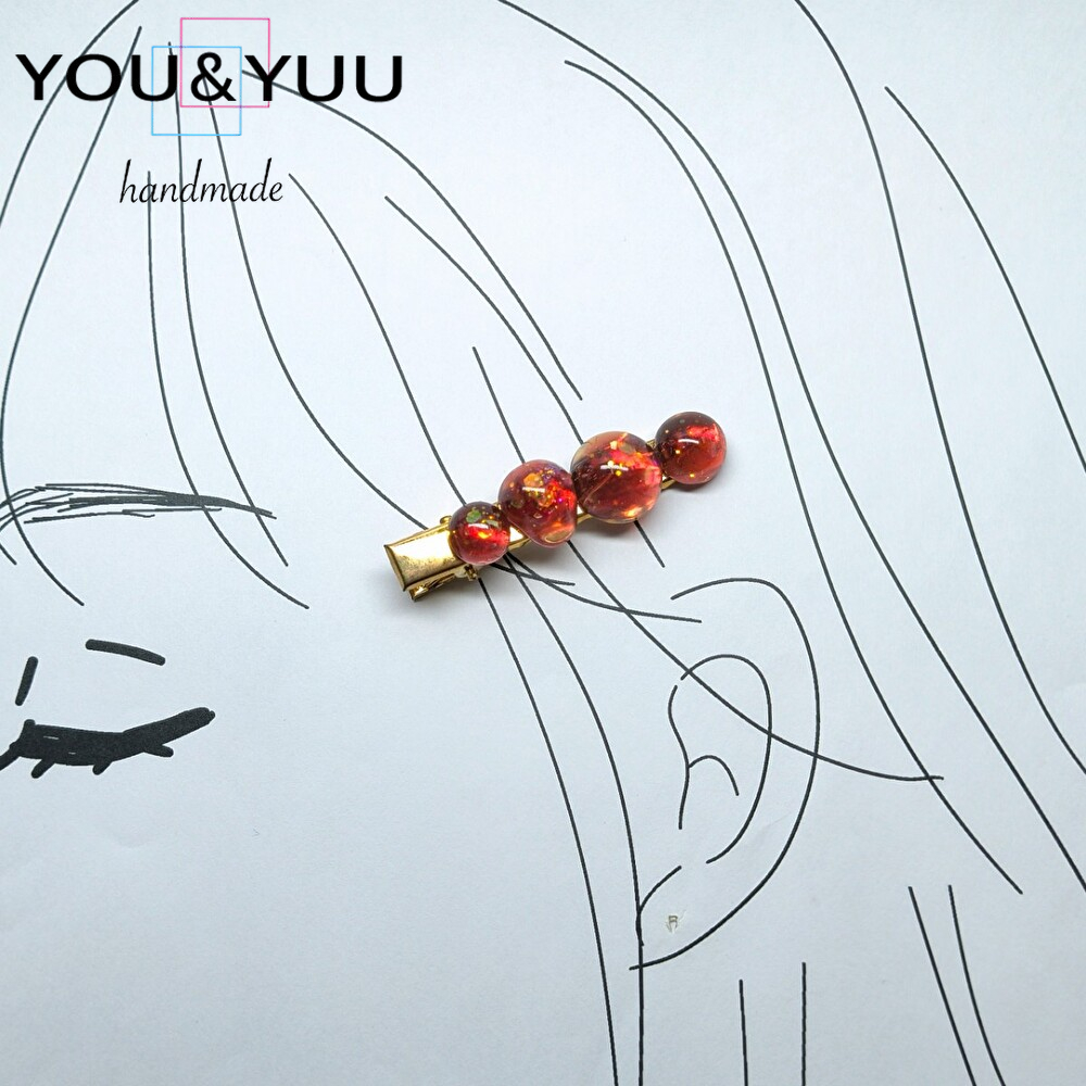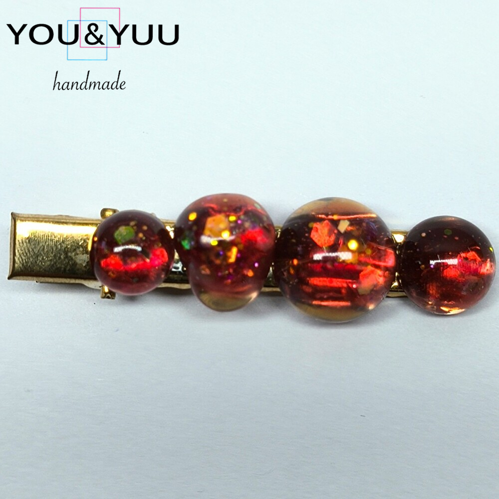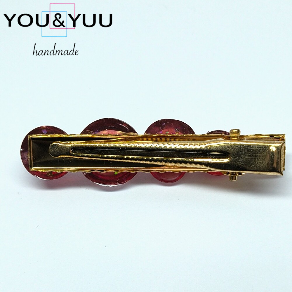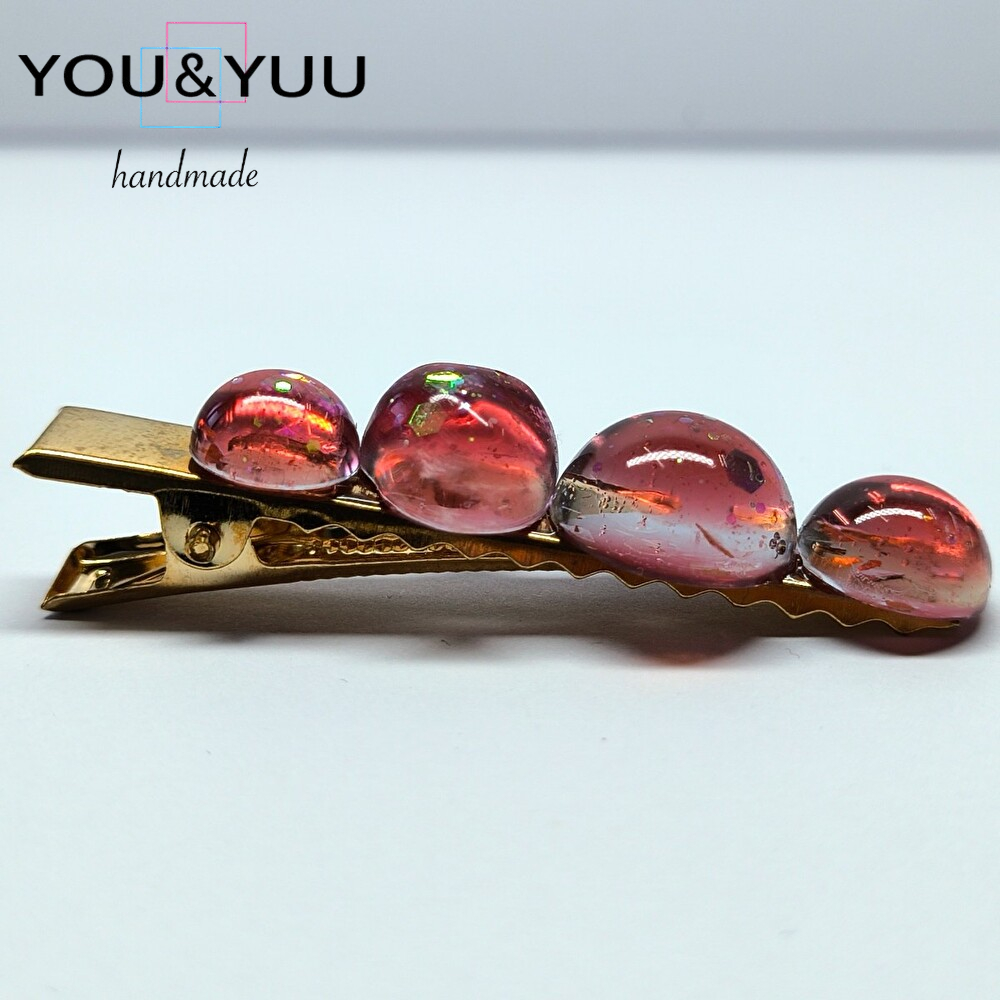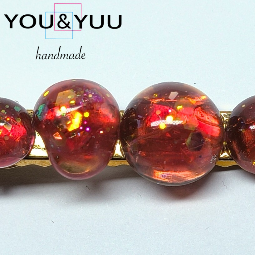 紅のラメビーズクリップ / レジンヘアクリップ / Ls 042