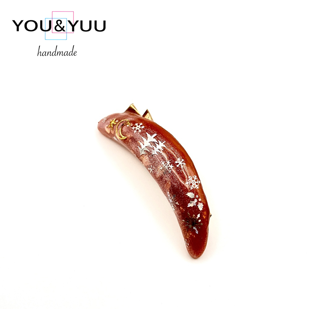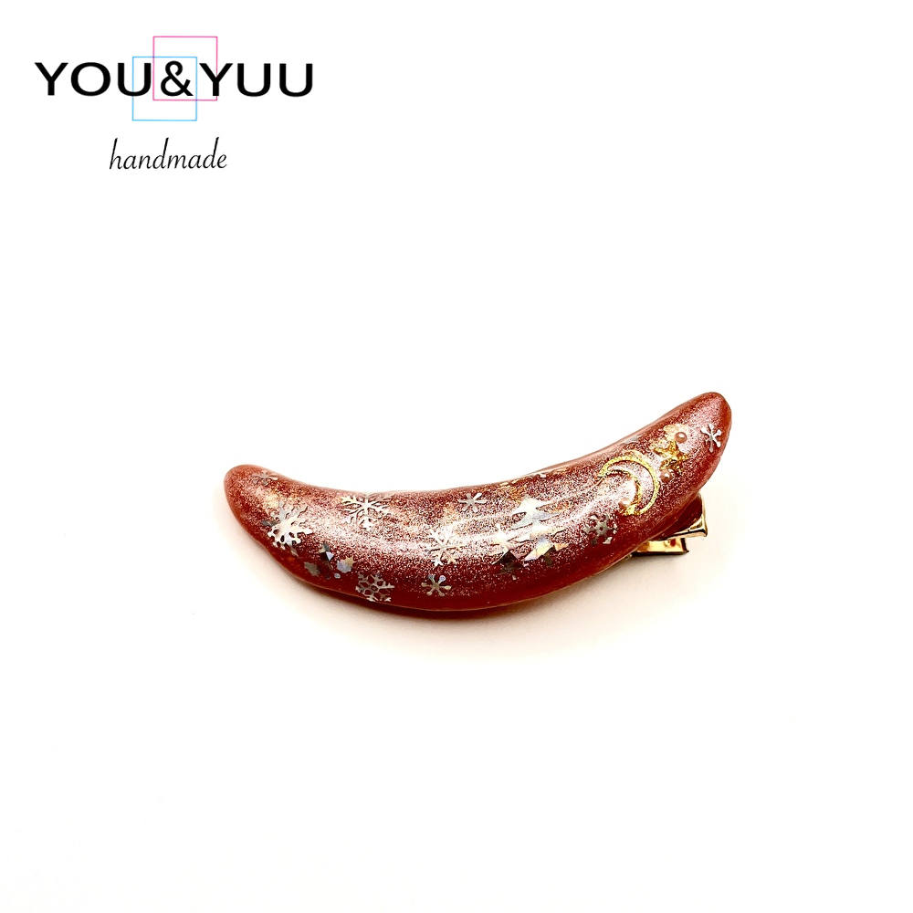 雪舞うレッドムーン♡レジンヘアクリップ / レジンヘアクリップ / Ls 308
